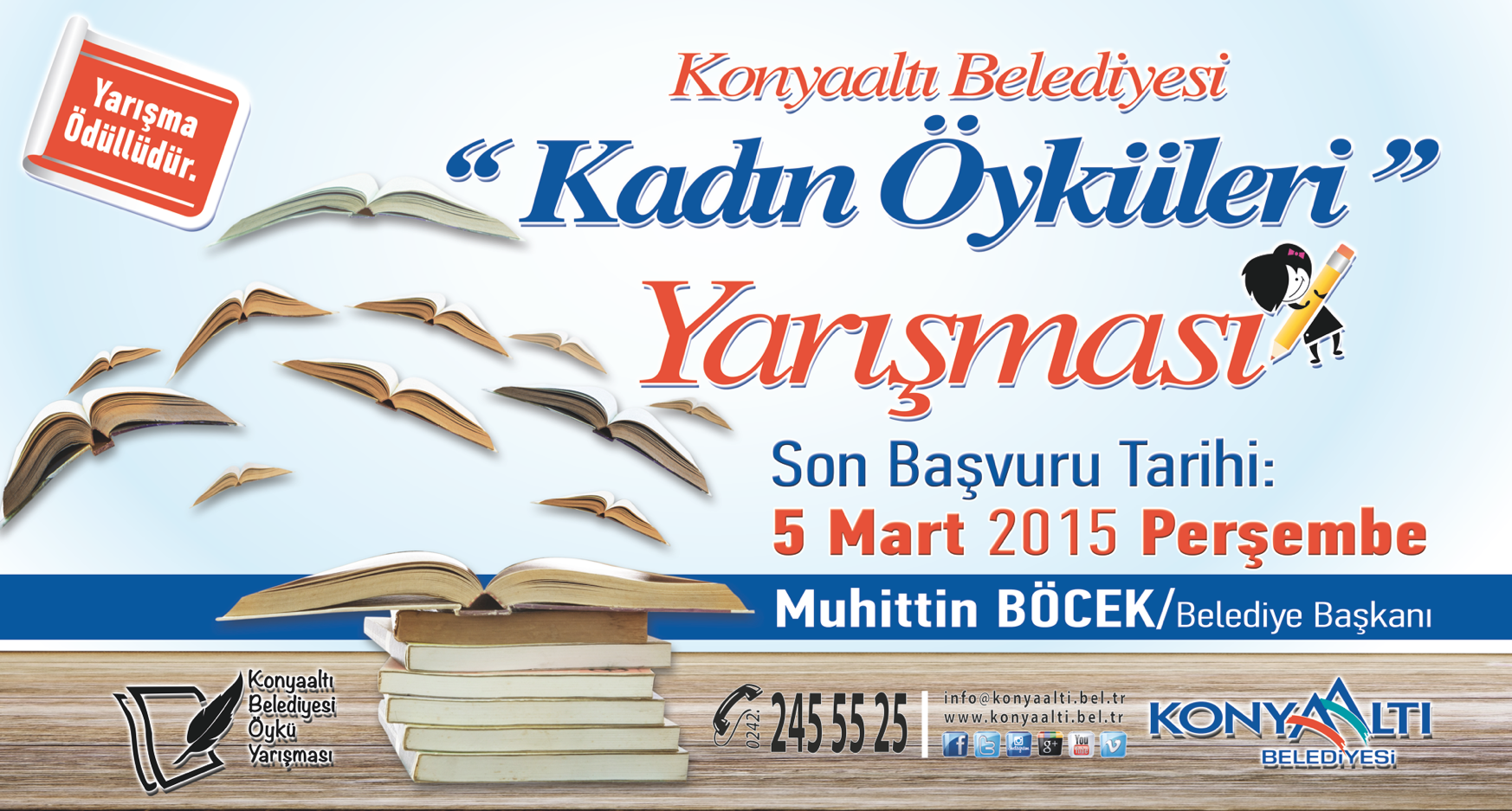 Yaşamın içersinde her türlü zorlukla mücadele eden, yaşamda karşısına çıkan tüm engelleri ve engellemeleri yok eden, anne sevgisi ve şevkati ile barış ve sevgi ortamı oluşturan kadınlarımızın, yaşamlarından kesitlerle oluşturulacak öykülerle 8 Mart Dünya Kadınlar gününde bir kez daha hatırlanması ve unutulmaması gerektiğine dikkat çekmek amacı ile Konyaaltı Belediyesince ‘‘Kadın Öyküleri ‘’ konulu öykü yarışması düzenlenmiştir.